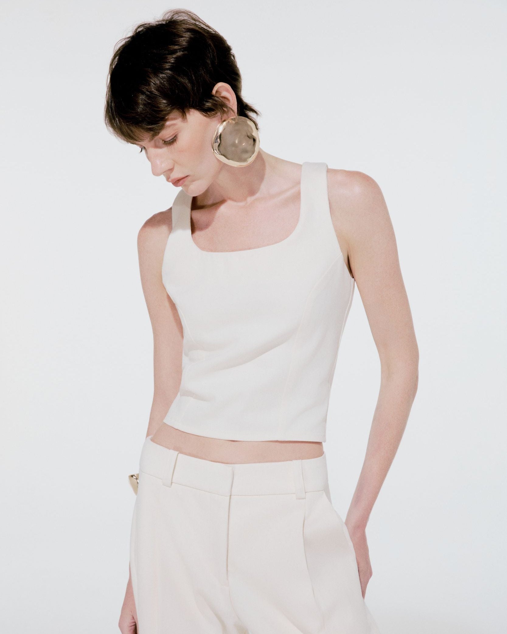A Regata Isis em sarja combina estrutura e elegância em uma proposta moderna e atemporal. Com modelagem ajustada e acabamento refinado, valoriza a silhueta com caimento firme e sofisticado.